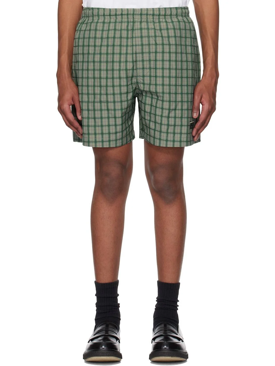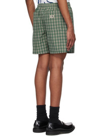 Polyester twill shorts. Check pattern throughout. · Concealed drawstring at elasticized waistband · Four-pocket styling · Mock fly · Logo and text embroidered at leg · Logo patch at back pocket Supplier color: Green 100% polyester. Made in South Korea 251586M193005