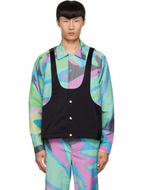 Rayon-blend canvas jacket. Graphic pattern printed throughout. · Paneled construction · Spread collar · Press-stud closure · Vest-style overlay at front · Adjustable press-stud fastening at cuffs · Full satin lining Supplier color: Botanico/Black Body 1: 56% rayon, 44% polyester. Body 2: 54% viscose, 46% cotton. Lining: 100% viscose. Made in Bulgaria 221985M180032