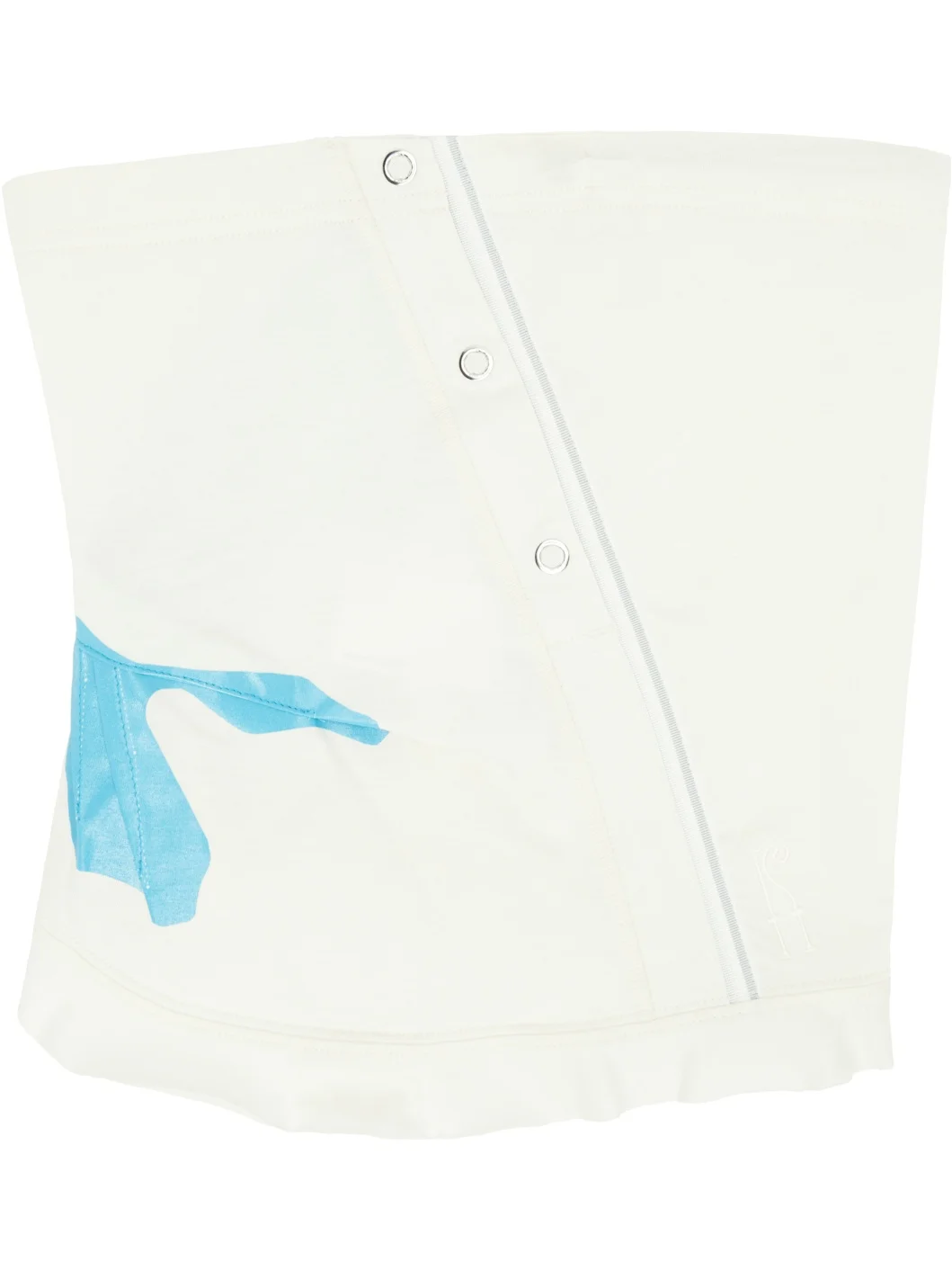 Cotton jersey scarf in off-white. · Asymmetric construction · Text embroidered at face · Press-stud placket with grosgrain trim · Raw edge at collar · Pleats and bonded trim at side and back face · Bungee-style cord at back face · L12" x W12.5" Supplier color: Off-white 100% cotton. Made in Portugal 251985M150002