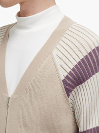 striped cardigan Highlights - Sand beige - Front button fastening - V-neck - Long sleeves - Straight hem Imported Composition Cotton 65%, Nylon 35%