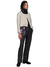 Cotton jersey scarf in black. - Asymmetric construction - Text embroidered at face - Press-stud placket with grosgrain trim - Raw edge at collar - Pleats and bonded trim at side and back face - Bungee-style cord at back face - L12 x W12.5 Supplier color: Black
