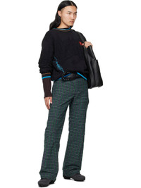 Knit recycled-blend cotton sweater. · Reverse-knit pattern throughout · Striped rib-knit crewneck, hem, and cuffs · Embroidered logo patch at chest · Graphic embroidered at side seams Supplier color: Black/Cerulean/Russet brown 60% cotton, 40% recycled cotton. Made in Bulgaria 252985M201002