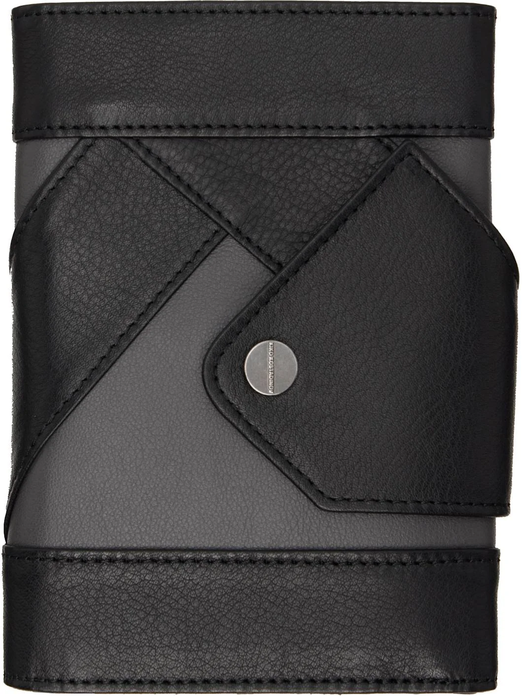Grained nappa calfskin trifold wallet. · Press-stud closure · Five card slots · One patch pocket · Two note slots · Zip coin compartment · H4.5" x W6" x D1" Supplier color: Ash grey/Black obsidian Calfskin. Made in Portugal 252985M163000