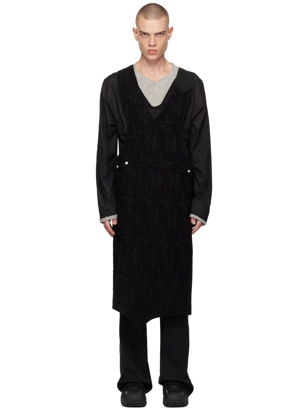 Knit virgin wool-blend vest. Jacquard pattern throughout. · Wrap construction · Y-neck · Patch pocket · Press-stud closure at waistband · Seam pockets · Vented back hem · Unlined Supplier color: Black Body 1: 76% virgin wool, 22% cotton, 2% polyamide. Body 2: 97% virgin wool, 3% elastane. Lining 1: 100% viscose. Lining 2: 65% polyester, 35% cotton. Made in Bulgaria 242985M191000