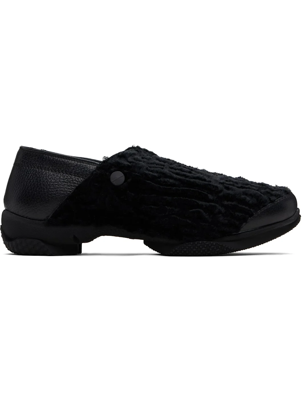 Faux-fur and pebble-grained leather loafers. · Blanket stitching at vamp · Logo hardware at outer side · Concealed elasticized gusset at inner side · Collapsible heel counter · Buffed leather lining · Treaded rubber sole Supplier color: Astrakan black Upper: textile, leather. Sole: rubber. Made in Italy 252985M231000