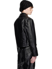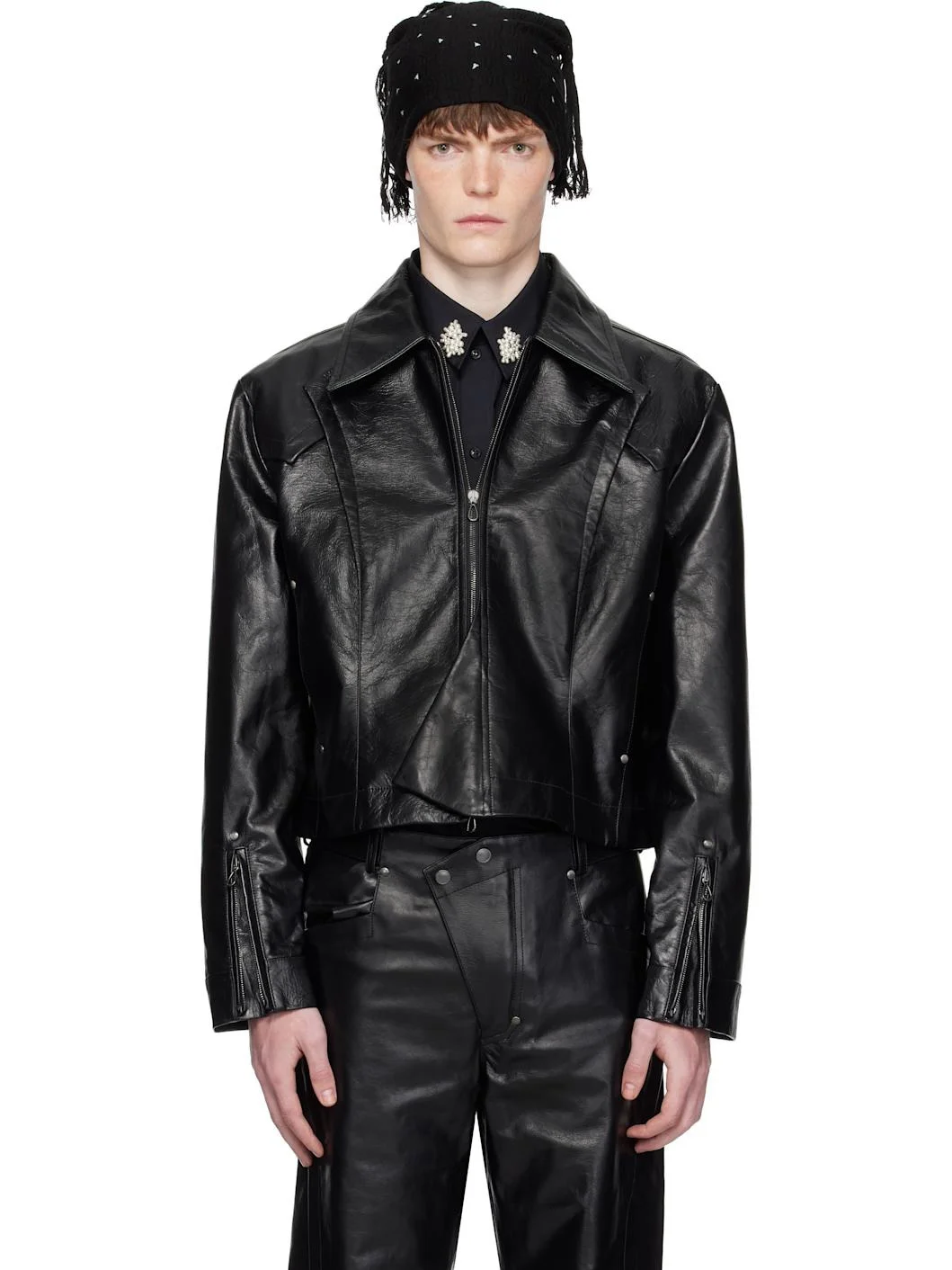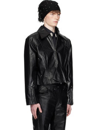 Grained leather jacket. · Spread collar · Two-way zip closure · Seam pockets at waist · Cropped hem · Zip expansion panel at cuffs · Welt pockets at interior · Full twill lining Supplier color: Raven black Body: 100% leather. Trim: 100% cotton. Lining: 65% cotton, 35% polyester. Made in Bulgaria 252985M181000