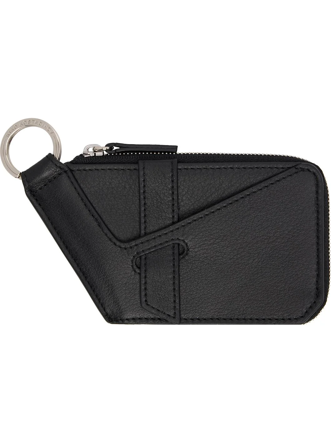 Grained nappa calfskin wallet. · Logo-etched mirror at face · Keyring at top · Patch pocket with strap at back face · Zip closure · Two note slots at interior · H5.5" x W3.25" x D0.5" Supplier color: Black Obsidian Calfskin. Made in Portugal 252985M171002