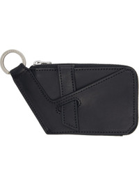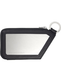 Grained nappa calfskin wallet. · Logo-etched mirror at face · Keyring at top · Patch pocket with strap at back face · Zip closure · Two note slots at interior · H5.5" x W3.25" x D0.5" Supplier color: Black Obsidian Calfskin. Made in Portugal 261985M164001