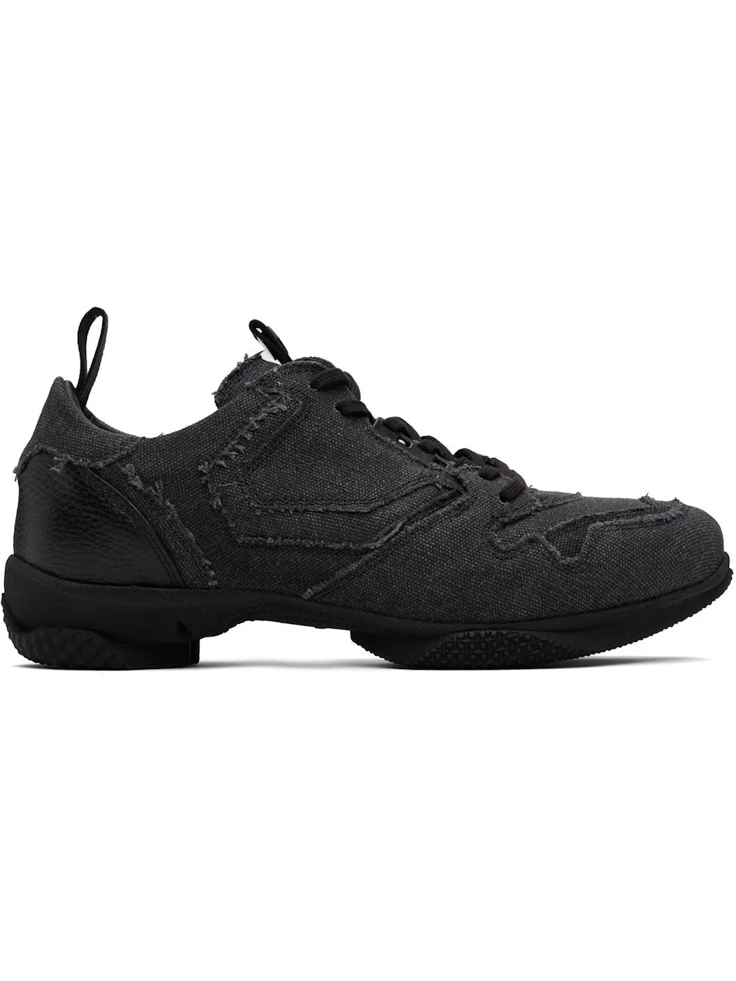 Low-top cotton canvas sneakers. · Raw edges and fading throughout · Lace-up closure · Pull-loop with logo hardware at tongue · Padded tongue and collar · Pull-loop at heel collar · Buffed leather lining · Treaded rubber sole Supplier color: Carbon black Upper: textile. Sole: rubber. Made in Italy 252985M237000