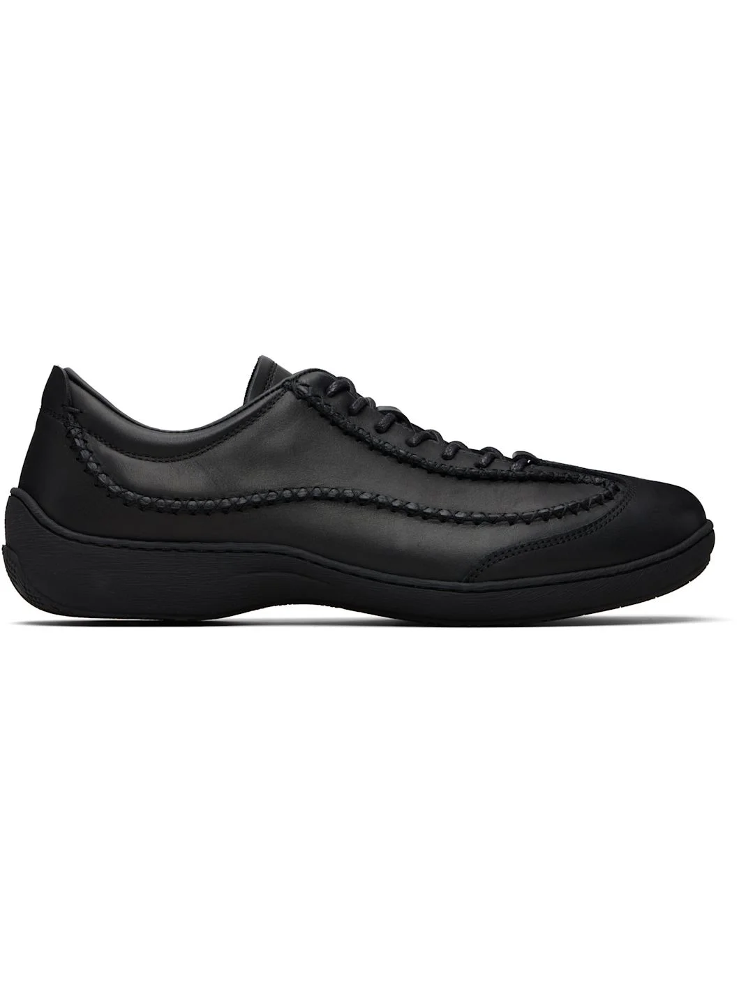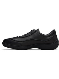 Low-top buffed calfskin sneakers. · Whipstitching throughout · Lace-up closure · Logo patch at tongue · Padded collar · Buffed leather and suede lining · Textured rubber midsole · Treaded rubber sole Supplier color: Black Upper: calfskin. Sole: rubber. Made in Italy 261985M237006