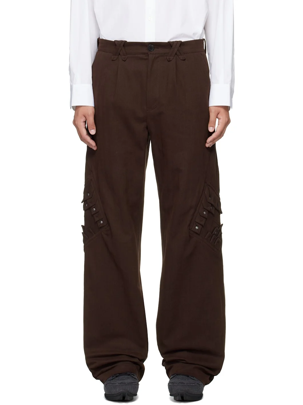 Woven stretch cotton-blend trousers. · Belt loops · Four-pocket styling · Zip fly · Pleated panel with rivets at outseams Supplier color: Wood brown 55% cotton, 42% tencel, 3% elastane. Made in Bulgaria 252985M191005