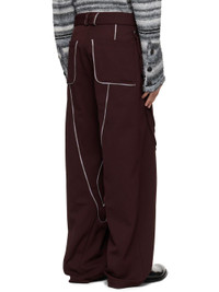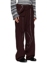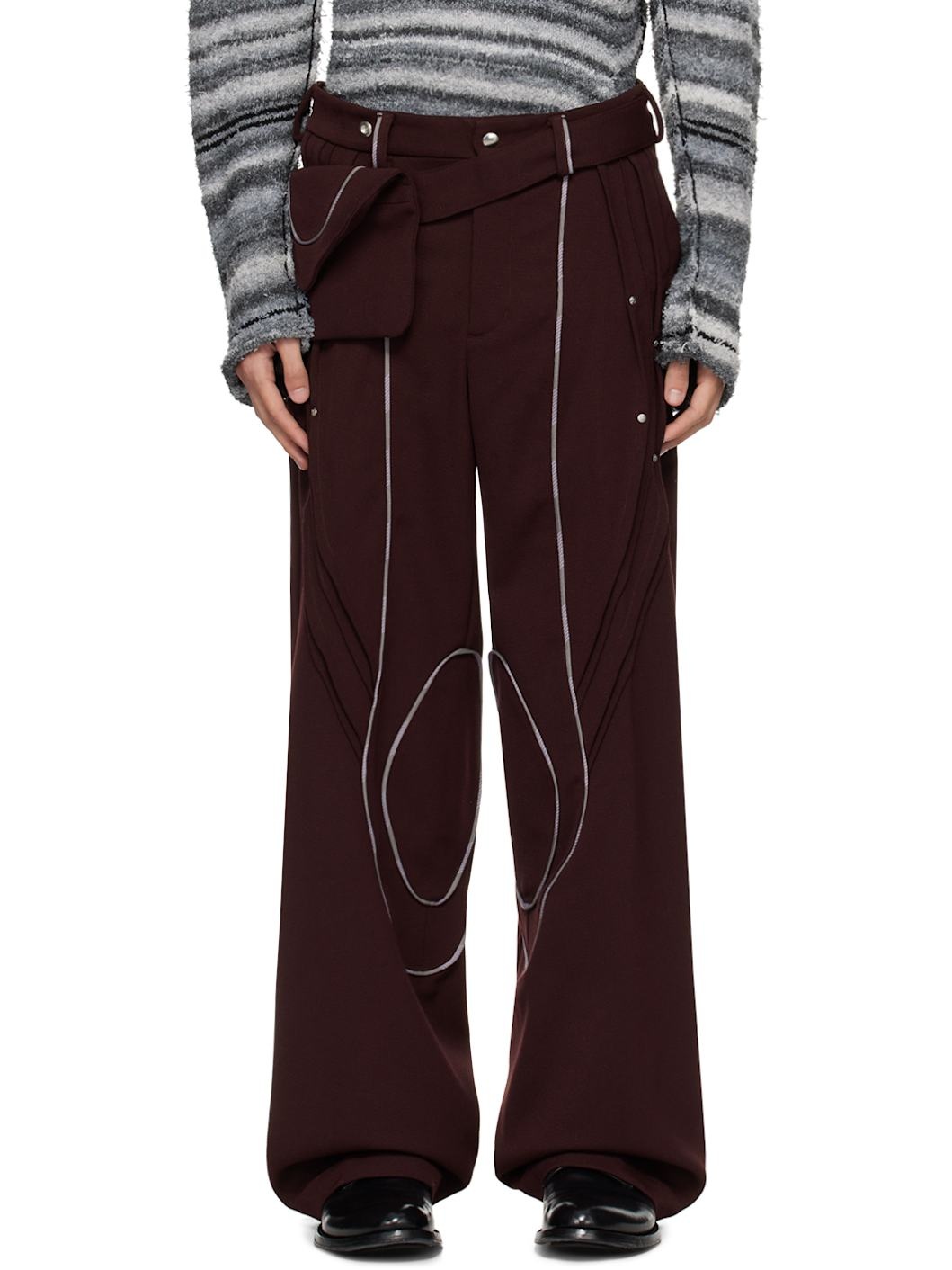 Straight-leg stretch polyester- and virgin wool-blend drill trousers. Piping throughout. · Paneled construction · Belt loops · Press-stud tab and detachable pouch at waistband · Four-pocket styling · Zip-fly · Inverted pintucks and rivets at twisted outseams · Graphic-engraved silver-tone hardware Supplier color: Maroon