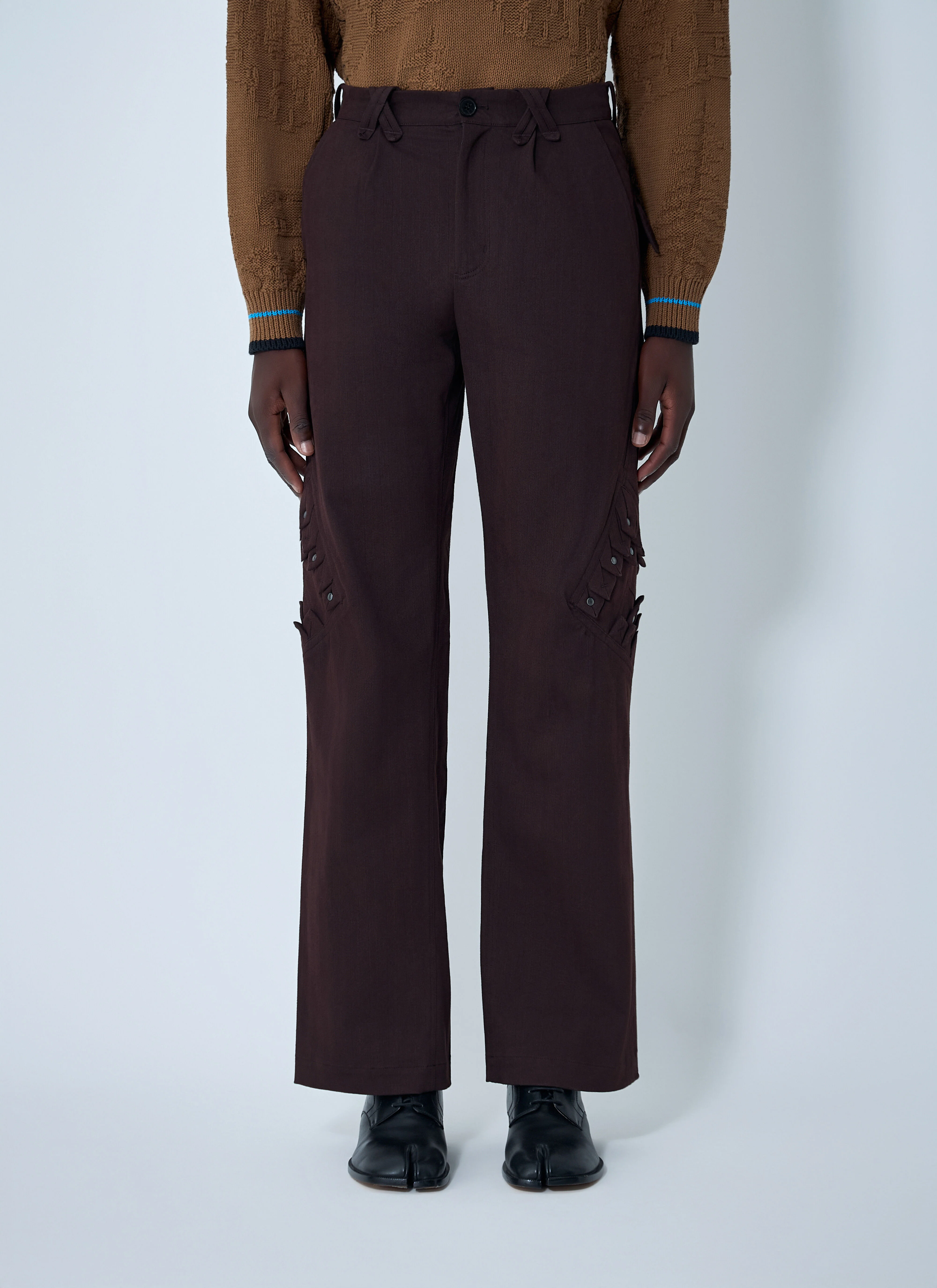 Pants with rivet detailing at leg. - Mid rise - Top-button and zip-fly fastening - Belt loops - Side slip pockets - Rear patch pockets - 100% Technical Fabrication Blend. Dry clean - Color: Brown - Code: KKAW25T05-13