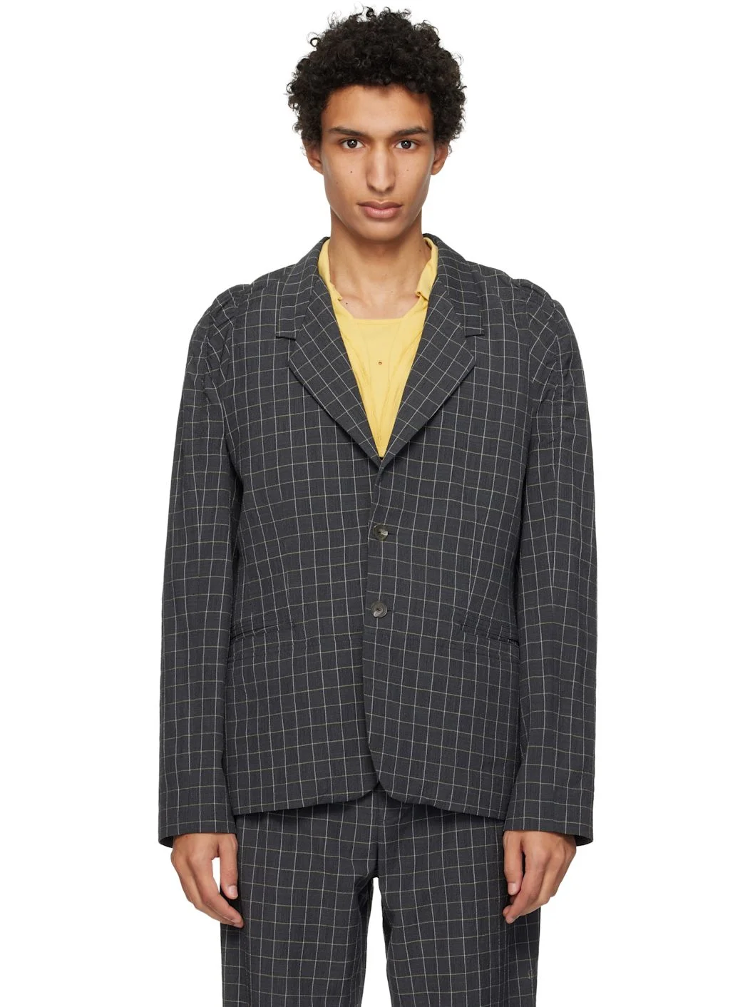 Plain-woven virgin wool blazer. · Check pattern throughout · Notched lapel · Button closure · Welt pockets at front · Gathering at shoulders · Central vent at back hem · Welt pockets at interior · Full satin lining Supplier color: Dim grey Body: 100% virgin wool. Lining: 100% viscose. Made in Poland 261985M195004