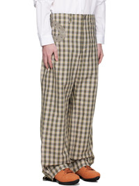 Cotton-blend oxford cloth trousers. · Check pattern throughout · Belt loops · Four-pocket styling · Zip fly · Button fastening and pleats at cuff · Studded grained leather trim at outseams and back · Pleats at back waist Supplier color: Oyster check/taupe Body: 97% cotton, 1% linen, 1% polyamide, 1% viscose. Trim 1: 100% leather. Trim 2: 100% cotton. Made in Bulgaria 252985M191012