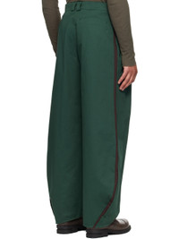 Cotton gabardine trousers. · Tapered · Belt loops · Five-pocket styling · Zip fly · Pleats at front · Creased legs · Herringbone trim and rivets at outseams Supplier color: Spruce green/Wood brown Body: 100% cotton. Trim 1: 55% cotton, 42% tencel, 3% elastane. Trim 2: 100% cotton. Made in Bulgaria 252985M191006