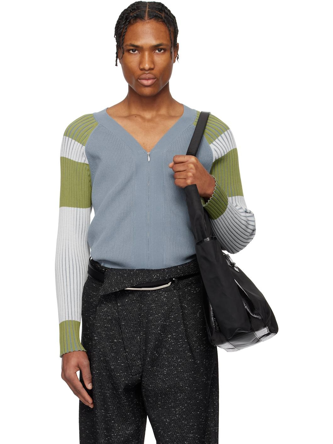 Rib-knit cotton-blend cardigan. Stripes throughout. - Y-neck - Zip closure - Seam pockets - Raglan sleeves Supplier color: Blue/ivory/green/black