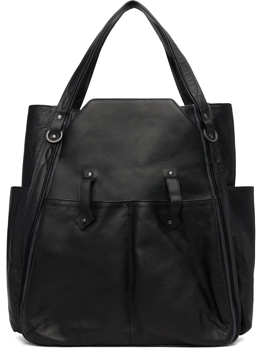 Grained nappa calfskin tote. · Twin shoulder straps · Patch pockets with post-stud tabs at face · Patch pocket at sides · Zip closure · Zip pocket and patch pocket at interior · Plain-woven lining · H17" x W16" x D5.5" Supplier color: Black Calfskin. Made in Portugal 252985M172001