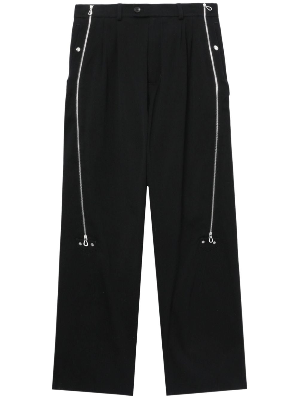 Know trousers Highlights - Black - Cotton - Concealed fly and button fastening - Mid-rise - Belt loops - Zip details - Stud embellishment - Pleat detailing - Two side slit pockets - Tailored cut Imported Composition Cotton 100%