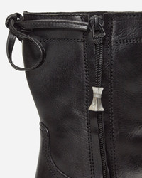 Kiko Kostadinov Farkas Boots Soot Black The Farkas Boot is crafted from smooth bovine leather with a rounded toe silhouette, inspired by work boots. Leather lined with an internal grosgrain ribbon finish, it features a side zip with a custom metal puller, leather back ties, and Vibram® rubber sole. - Bovine Leather Upper - Leather Lining - Round Toe - Internal Grosgrain Ribbon Finish - Side Zip Closure - Vibram® Rubber Sole - Style Code: KKSS265FT04 129