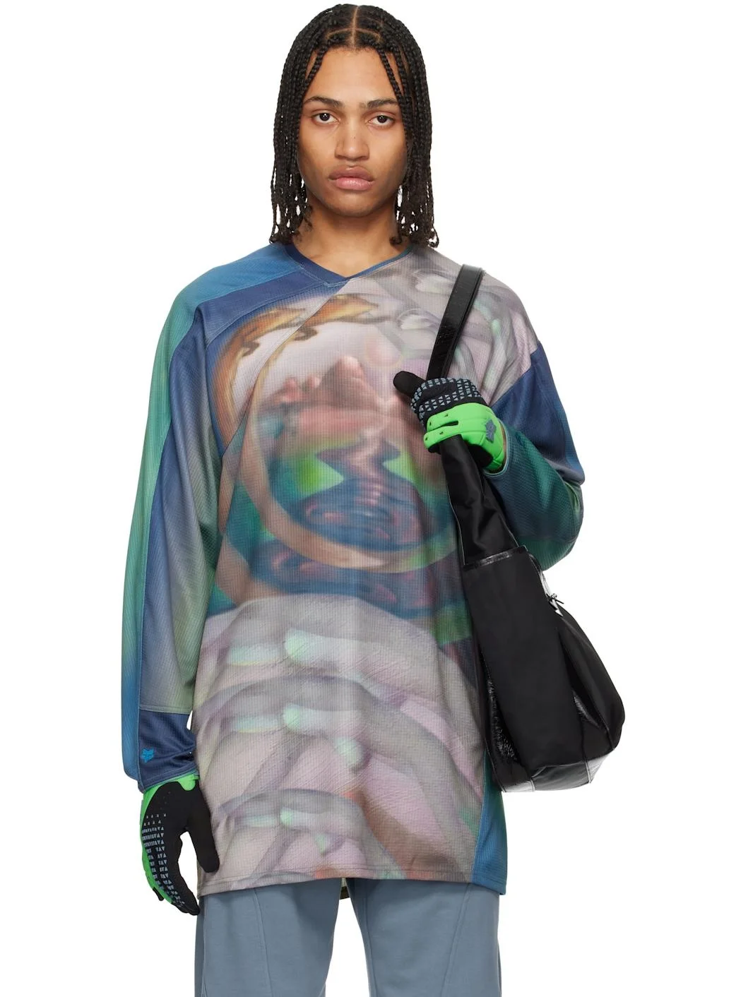 Polyester tricot T-shirt. Graphic and gradient pattern printed throughout. - Paneled construction - Modified crewneck - Logo embroidered at cuffs Part of the Kiko Kostadinov x Fox Racing collaboration. Supplier color: Dark vintage