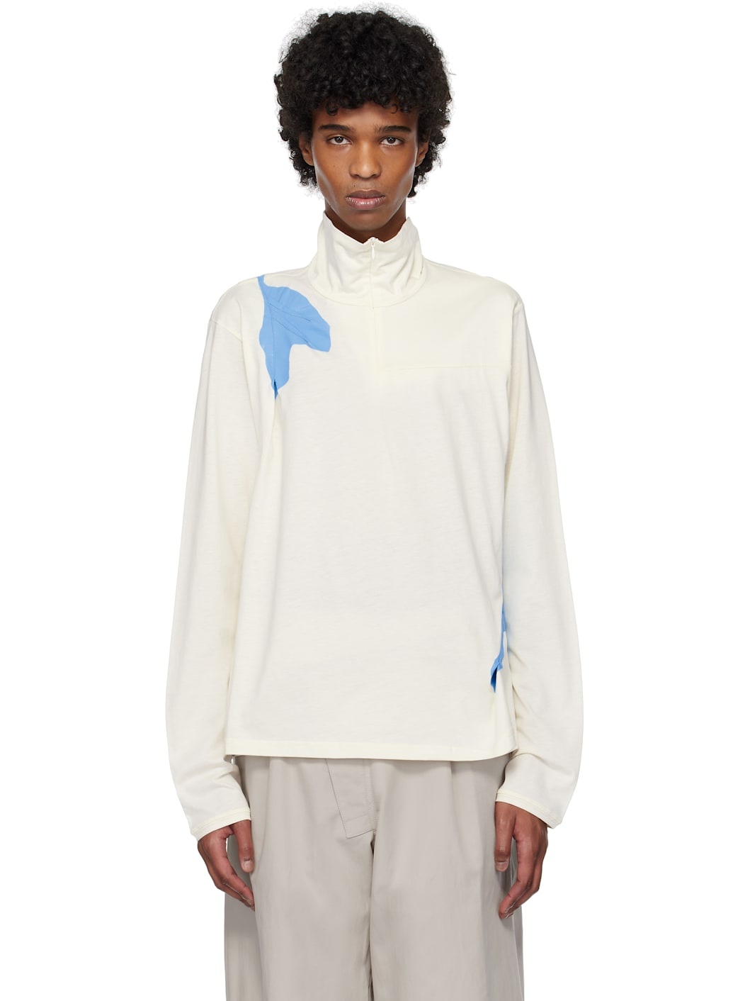 Cotton jersey sweatshirt. - Embroidery at inner stand collar - Half-zip closure - Darts with printed detailing at front and back Supplier color: Off-white