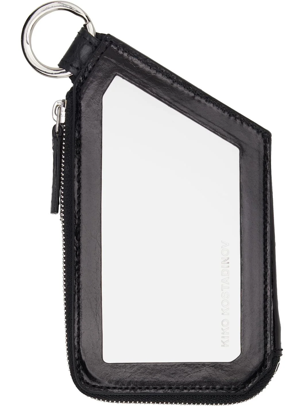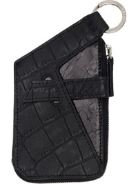 Croc-embossed calfskin wallet in black. · Logo-etched mirror at face · Keyring at top · Patch pocket with strap at back face · Zip closure · Two note slots · Logo-engraved silver-tone hardware · H5.5" x W3" Supplier color: Black Calfskin. Made in Portugal 251985M164000