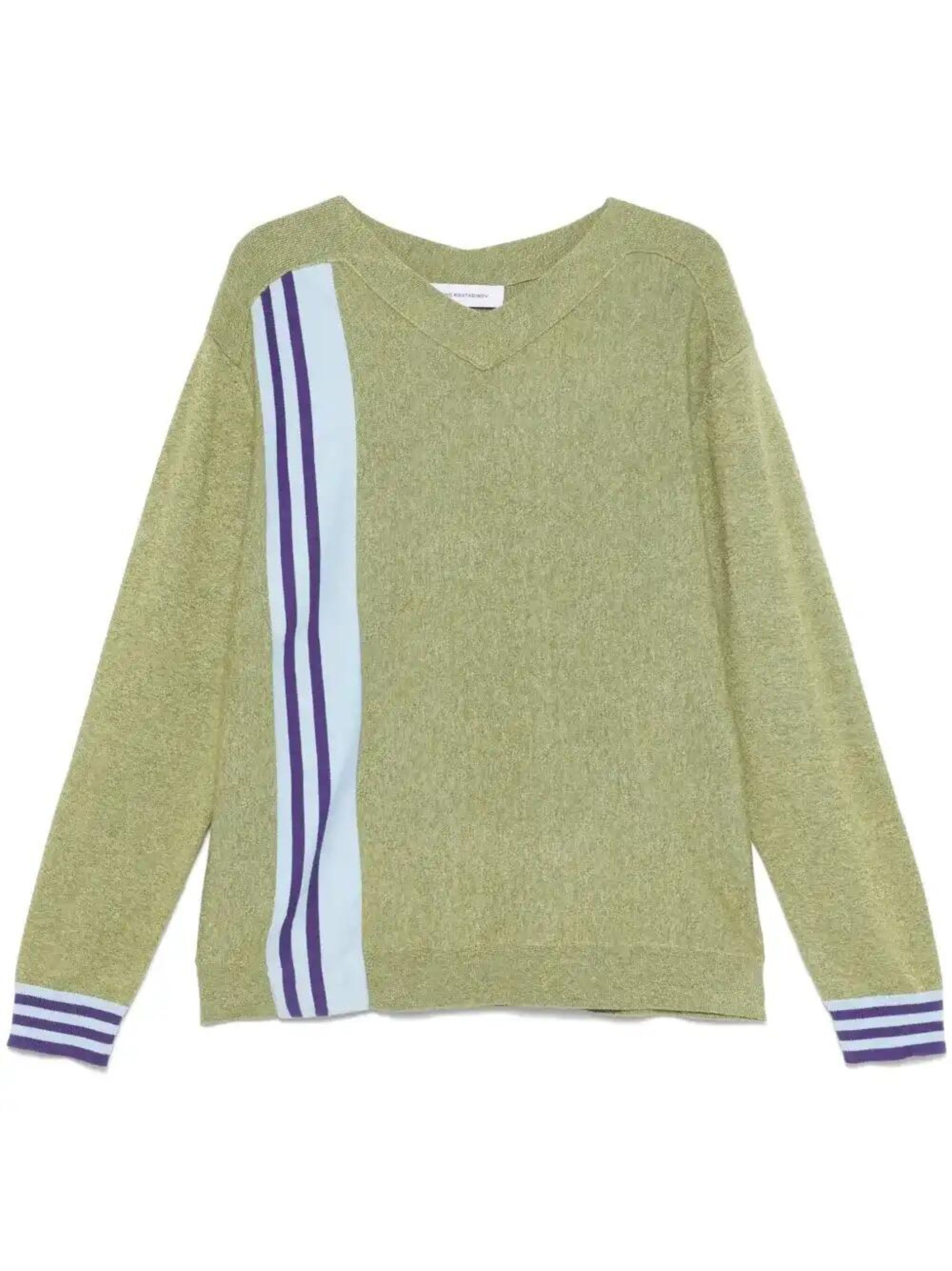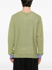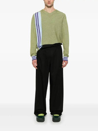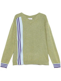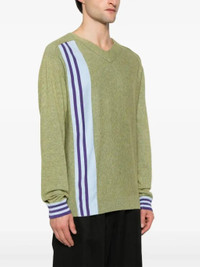 light green V-neck long sleeves ribbed cuffs and hem stripe detailing Size & Fit Model Measurements: Height: 1.86 m Bust/Chest: 92.0 cm Hips: 96.0 cm Waist: 78.0 cm Model wears size 50 Fabric and Care Designer Style ID: KKSS25KN02106 Designer Colour: GREEN MELANGE /SKY BLUE/ PURPLE Composition: Polyester 27%, Cashmere 5%, Acrylic 22%, Nylon 18%, Viscose 33%, Cotton 95% Washing instructions: Dry Clean Only
