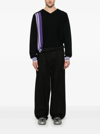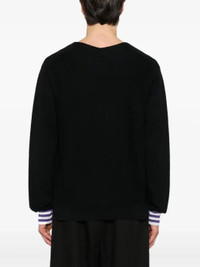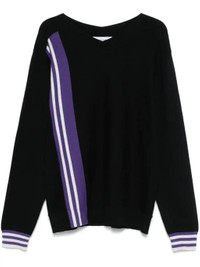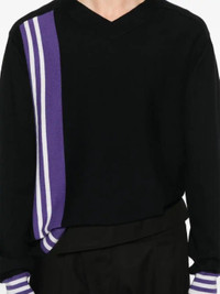 black V-neck long sleeves ribbed trim stripe detailing Size & Fit Model Measurements: Height: 1.86 m Bust/Chest: 92.0 cm Hips: 96.0 cm Waist: 78.0 cm Model wears size 50 Fabric and Care Designer Style ID: KKSS25KN02109 Designer Colour: DEEP BLACK PURPLE/PALE BLUE Composition: Polyester 27%, Acrylic 22%, Viscose 33%, Nylon 18% Washing instructions: Dry Clean Only