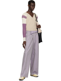 Cotton-blend herringbone trousers. · Belt loops at asymmetric foldover waistband · Four-pocket styling · Zip fly · Pleats at front · Adjustable press-stud tabs at back waistband Supplier color: Violet Body: 70% cotton, 30% polyester. Lining: 100% cotton. Made in Bulgaria 251985M191009