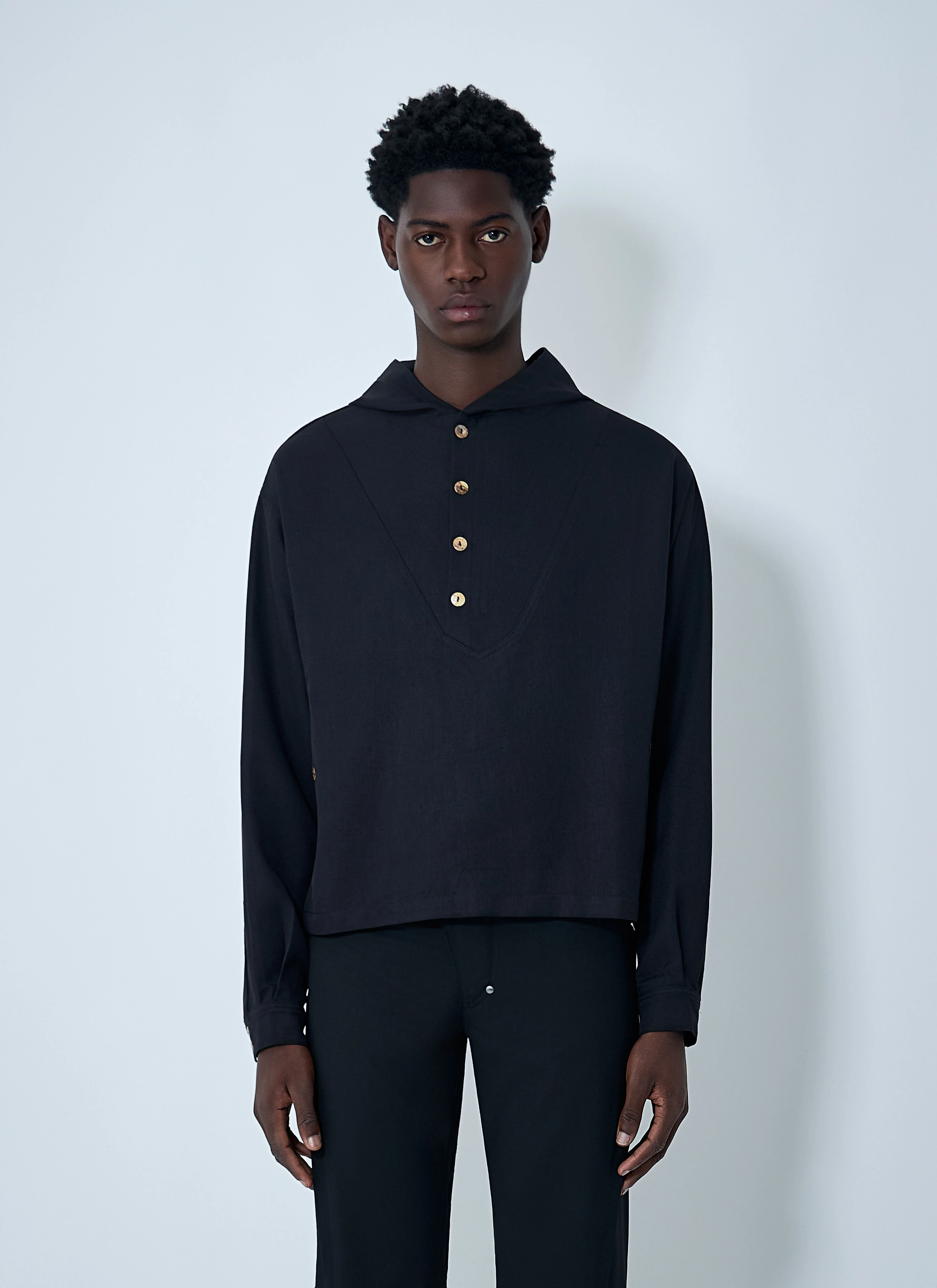 Fleece hooded sweatshirt with front button fastening. - Hood - Long sleeves - Front button fastening - Ribbed trims - 100% Technical Fabrication Blend. Dry clean - Color: Black - Code: KKAW25TP04-63