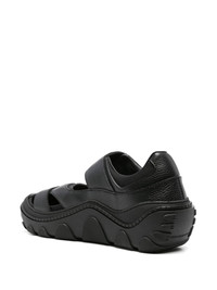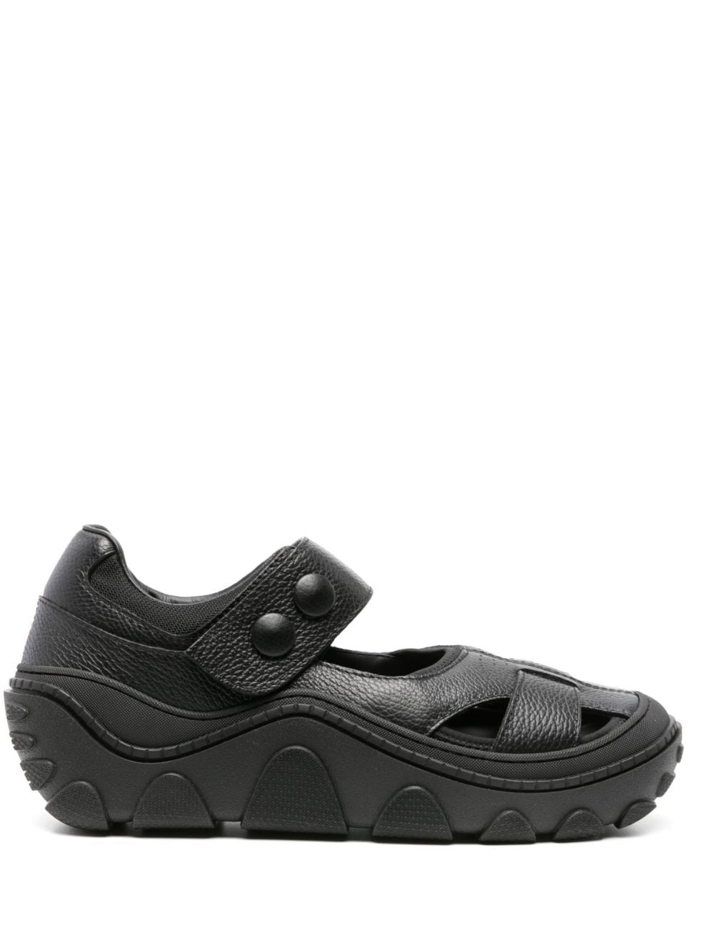 Tonkin leather sandals Highlights - Black - Calf leather - Grained texture - Interwoven design - Perforated detailing - Square toe - Touch-strap fastening - Branded footbed - Flatform sole Made in Italy Composition Outer: Calf Leather 100%, Fabric 100% Lining: Fabric 100%, Rubber 100% Sole: Rubber 100% SIZE & FIT Measurement HEEL 1.96 in(5 cm) Sole height 0.98 in(2.5 cm)