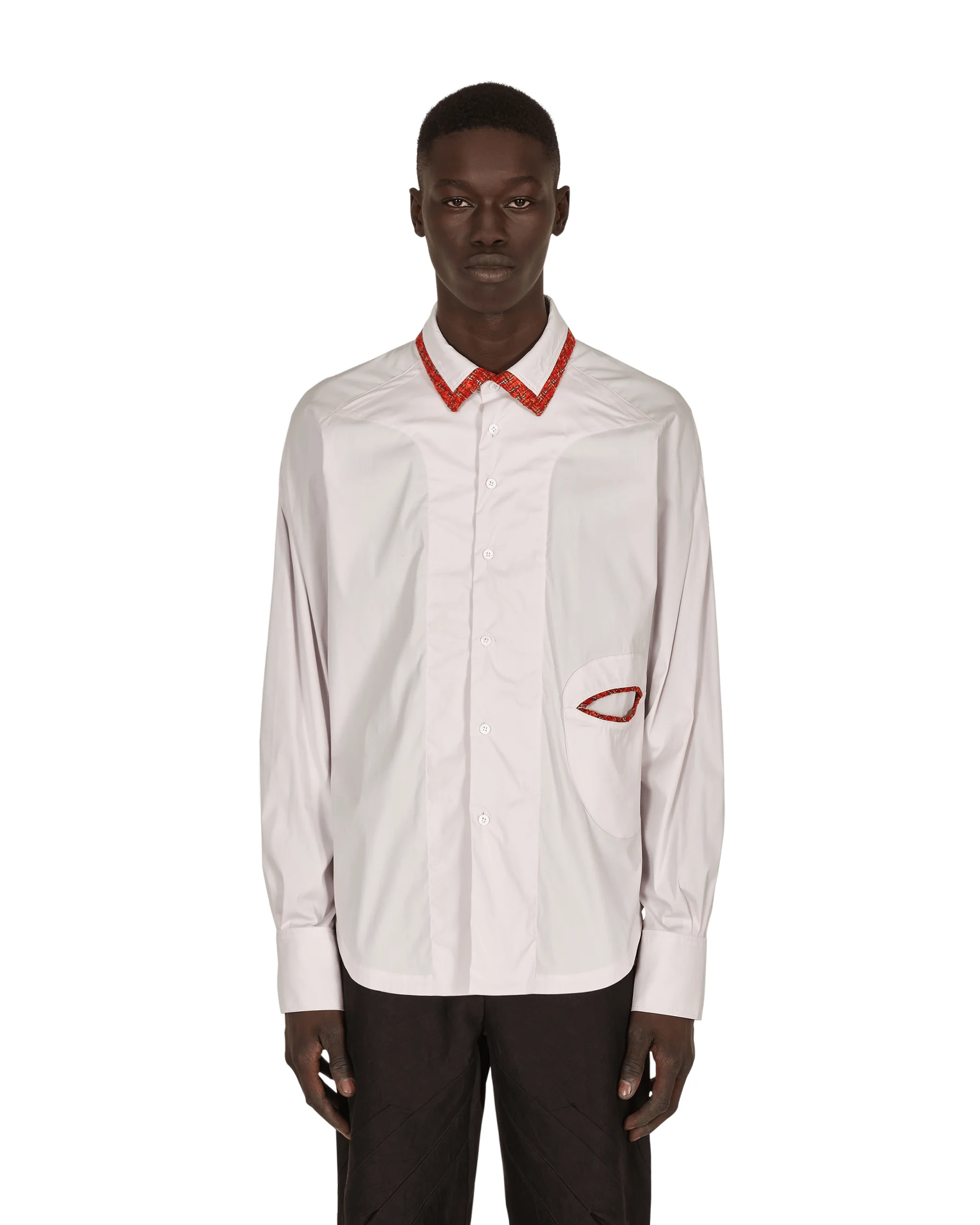 Kiko Kostadinov Torquils Pocket Shirt Pale Camellia / Ruby - 78% Cotton, 18% Polyamide, 4% Elastane - Raglan Sleeves - Contrast Spread Collar - Button Closure - One Front Pocket - Adjustable Back Tab - Curved Hem - Button Cuffs - Style Code: KKAW21SH01-41 001 SIZE & FIT Model is 6ft 1in/1.85m with 34"/86cm chest and wears size M. Measures (Size M): 56cm Chest, 85cm Sleeve, 76cm Length, 54cm Hem.