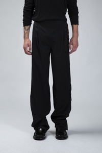 Wide-leg silhouette with a modern, relaxed fit, offering versatile styling options. The minimalistic design is enhanced by subtle button detailing along the side, creating a streamlined aesthetic. Materials: 97% Virgin Wool, 3% Elastane (Outer); 65% Cotton, 35% Polyester (Lining) Color: crow black SKU: 153146 Brand style: KKAW25T11-27