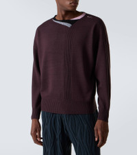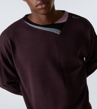 Opt for a classic design with a twist in this Kiko Kostadinov sweater. Crafted from wool and silk, the garment is cut to a relaxed silhouette and finished with a front ribbed-knit panel and a three-color crewneck. Product Details - Material: 75% wool, 25% silk - Care instructions: dry clean - Made in China - Designer color name: Dark Brown/Pine/Lilac - Item color: brown - Sleeves: long-sleeved - Item number: P01080266 Size & Fit - True to size - Dropped shoulders - Designed for a loose fit - Stretchy fabric - Falls to the hip - Height of model is 189cm-74.5" and wears a size IT 50