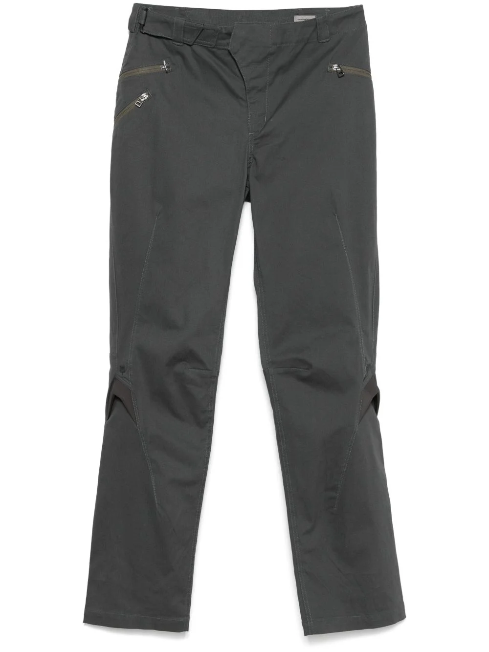 x Fox twill trousers Highlights - Dark grey - Front press-stud and zip fastening - Belt loops - Multiple zip-fastening pockets Imported Composition Cotton 98%, Elastane 2% SIZE & FIT Model measurements Height 6 ft 2 in(1.87 m) Bust/Chest 38.18 in(97 cm) Hips 36.61 in(93 cm) Waist 29.13 in(74 cm) FittingInformation Designed for a relaxed straight leg, allowing a comfortable and loose fit over the leg The adjustable tabs allow for fitted preferences Made from a midweight stretch fabric, this piece offers elasticity and flexibility when worn