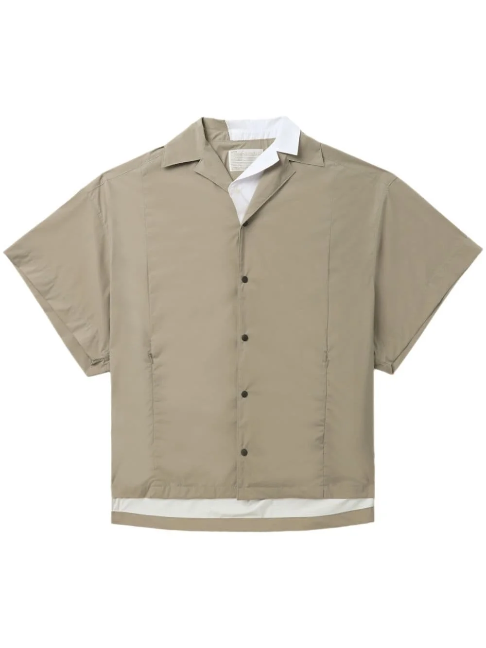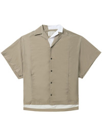contrast-collar layered shirt Highlights - Beige - White - Layered details - Contrasting collar - Short sleeves - Two side zip-fastening pockets - Front button fastening - Straight hem Imported Composition Nylon 100%