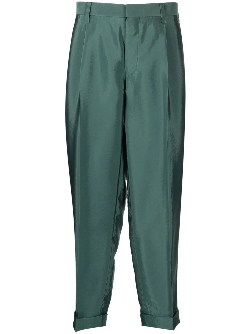 cropped tapered-leg suit trousers dark green mid-rise belt loops concealed front fastening two rear flap pockets tapered leg cropped Imported Composition Polyester 100% SIZE & FIT Model measurements Height 6 ft 2 in(1.87 m) Bust/Chest 36.22 in(92 cm) Hips 37.79 in(96 cm) Waist 28.34 in(72 cm) FittingInformation This piece fits true to size. We recommend you get your regular size Regular fit Made with a mid-weight non-stretch fabric Washing instructions Dry Clean Only