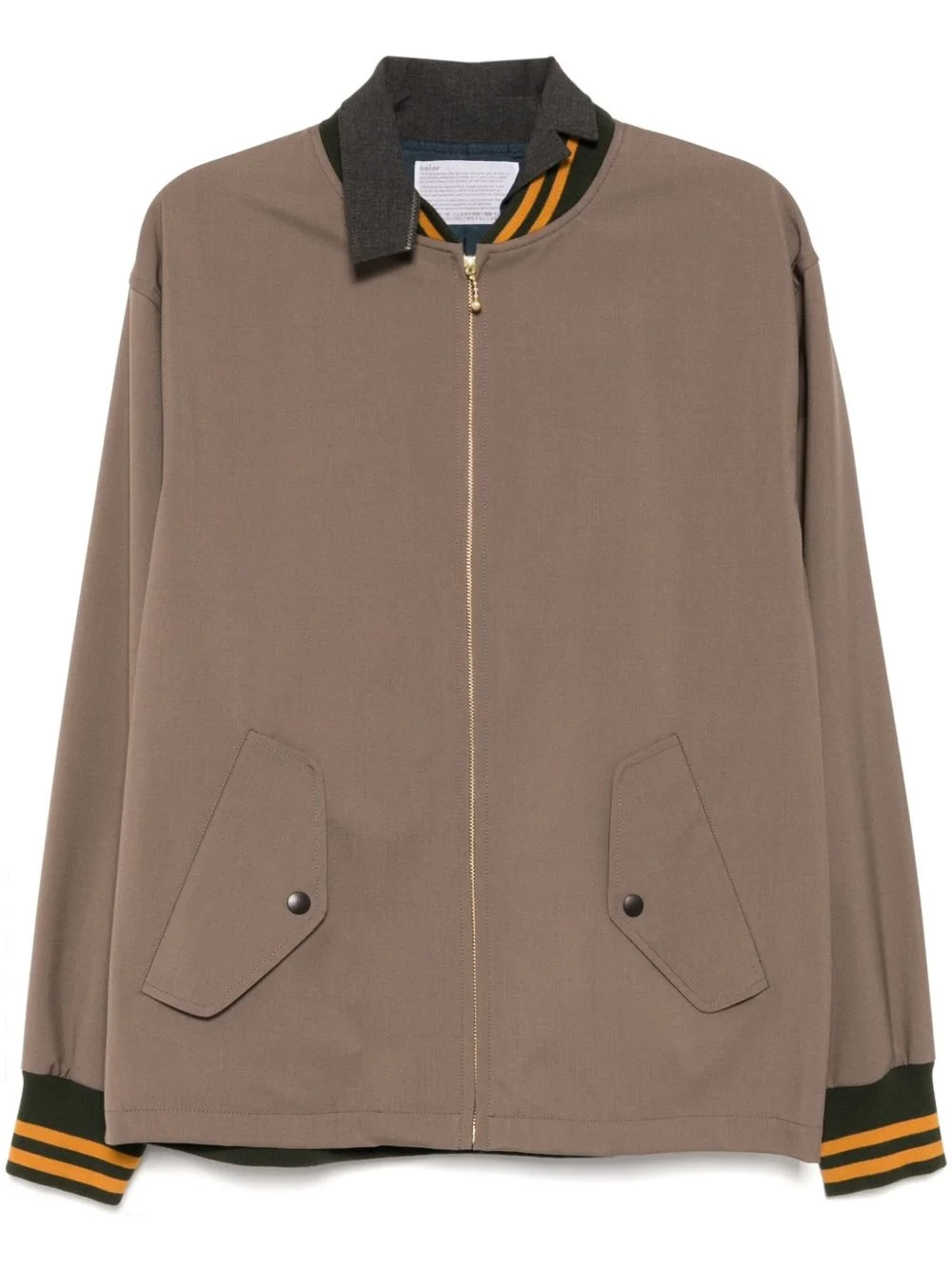 layered shirt jacket Highlights - Brown - Front zip fastening - Baseball collar - Two front flap pockets - Ribbed cuffs and hem Imported Composition Lining: Polyester 100% Outer: Polyester 60%, Wool 40%