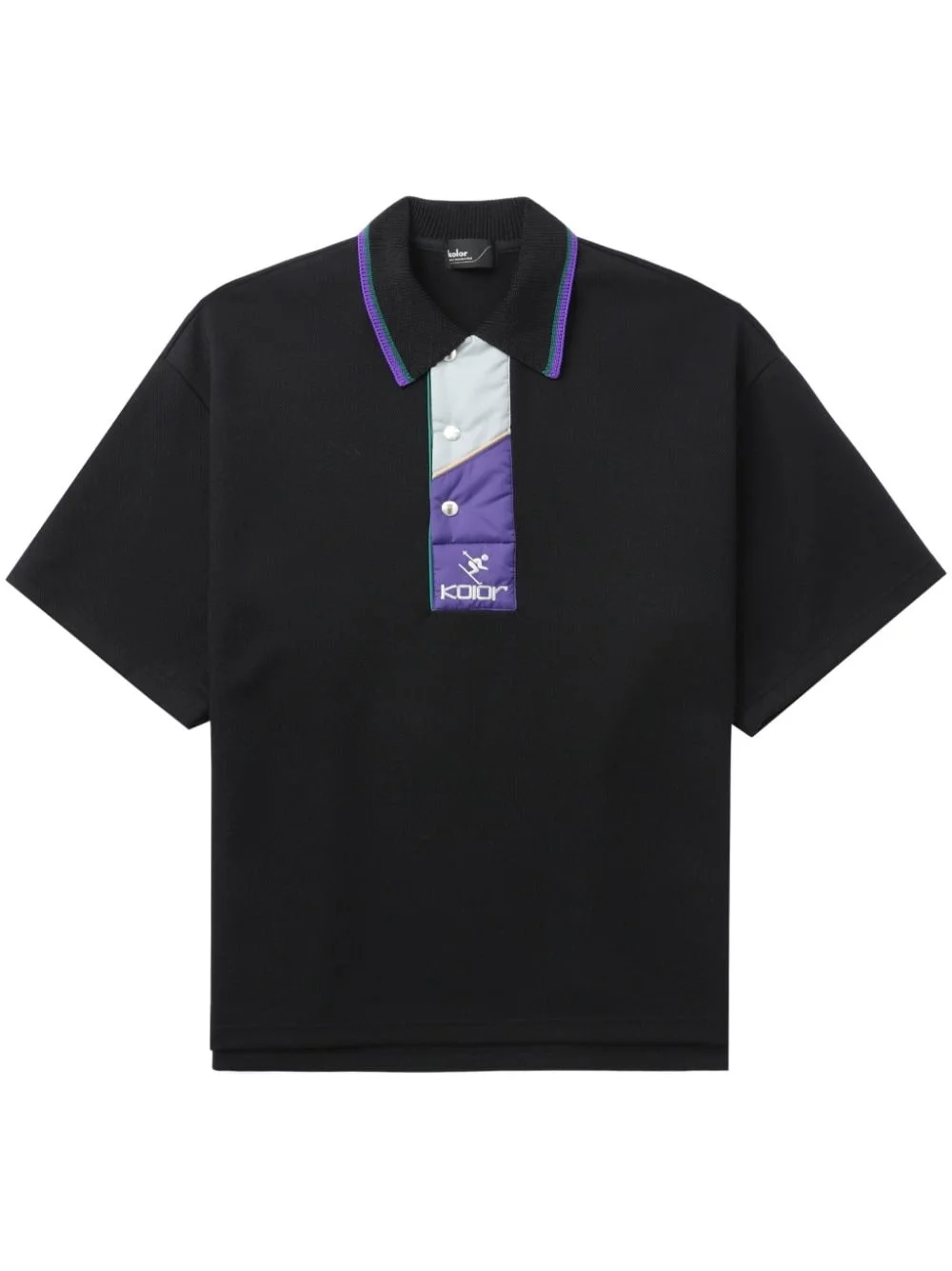 logo-embroidered polo shirt Highlights - Black/purple/grey - Cotton blend - Polo collar - Contrasting press-stud placket - Embroidered logo - Short sleeves - Straight hem Imported Composition Cotton 58%, Polyester 42%
