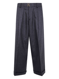 pinstriped buckled trousers Highlights - Dark grey - Pinstripe pattern - Buckle detail - Turn-up hem - Rear button-fastening pocket - Pleat detailing Imported Composition Wool 100% Washing instructions Read Manufacturer Guidelines