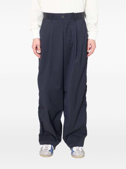 pleated-front trousers Highlights - Dark blue - Pleated design - Welt pockets Imported Composition Polyester 70%, Wool 30% Washing instructions Read Manufacturer Guidelines