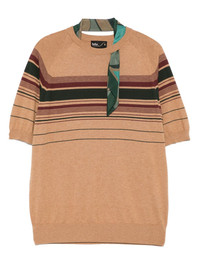 striped T-shirt Highlights - Light brown - Ribbed cuffs and hem - Crew neck - Short sleeves Imported Composition Silk 100%, Cotton 70%, Wool 30%