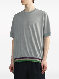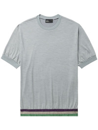 striped-trim knit top Highlights - Grey/multicolour - Wool blend - Crew neck - Short sleeves - Straight hem - Stripe trim - Ribbed trim Imported Composition Wool 70%, Polyamide 30%