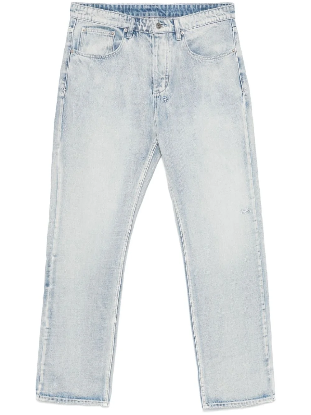 Anti K jeans Highlights - Light blue - Cotton - Washed denim - Bleach wash - Button fly fastening - Mid-rise - Belt loops - Classic five pockets - Embroidered logo to the front - Signature t-box logo - Raw-cut hem - Straight leg Imported Composition Cotton 100% SIZE & FIT Model measurements Height 6 ft 1 in(1.86 m) Bust/Chest 36.61 in(93 cm) Hips 37 in(94 cm) Waist 28.74 in(73 cm) FittingInformation Designed with a straight leg, these jeans allow for an unrestricted and comfortable fit over the leg Sturdy and hard-wearing, this denim piece offers no stretch