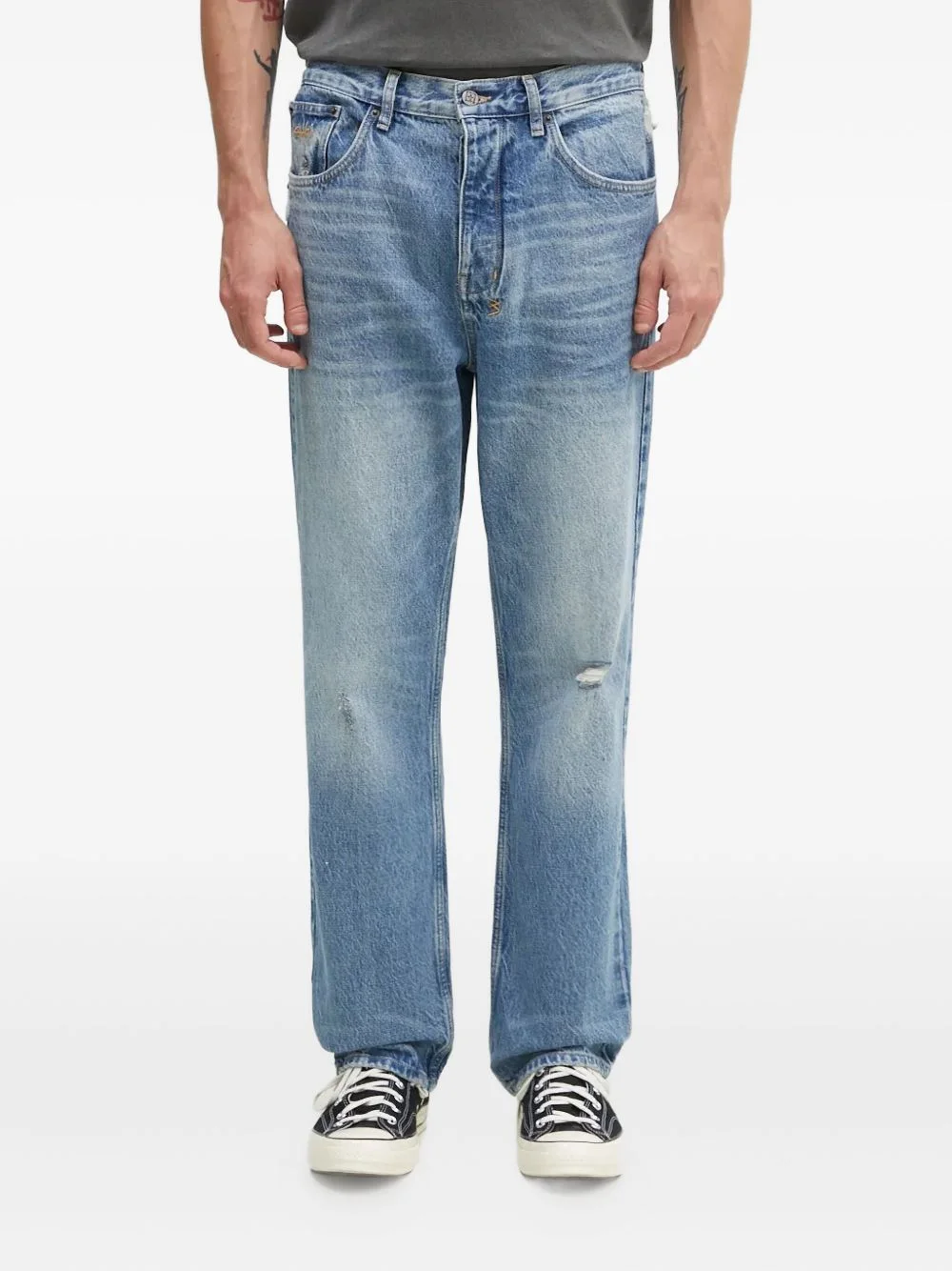 Anti K Maverik distressed jeans Highlights - Blue denim - Distressed detail - Five pockets - Belt loops - Button fastening Imported Composition Cotton 100% Washing instructions Read Manufacturer Guidelines