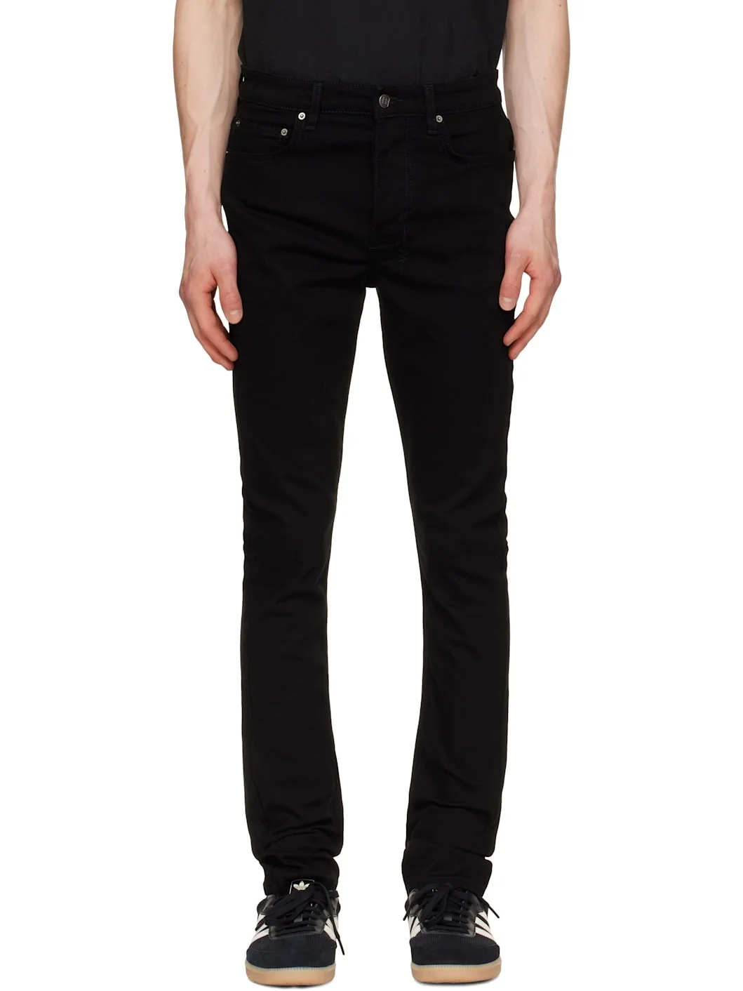 Stretch denim jeans. · Slim-fit · Mid-rise · Belt loops · Five-pocket styling · Button fly · Logos embroidered at back · Detachable logo flag at back pocket · Logo printed at back leg Supplier color: Laid black 98.4% cotton, 1.6% elastane. Made in Turkey 252088M186039