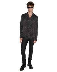 The Polka Plus Ls Shirt Black is a long sleeve button down shirt made from a printed polyester fabric. Details include a traditional placket sleeve closure and a centre back pleat and features branded buttons at the front and signature Ksubi t-box printed branding. FEATURES, SIZE & FIT - Regular fit shirt - Button placket closure - Regular 2 piece collar - Long sleeve - Rats tail - Ksubi T-box embroidery branding - No stretch - 58% Cupro, 42% Viscose - Size M length shoulder to hem: 75cm / 29 1/2" - Model is wearing a size 31/M, height 186cm/6'1", chest 91cm, waist 76cm, hip 97cm - Cool machine wash on delicate setting with like colours, dry flat without delay, do not wring, do not bleach, do not tumble dry, cool iron on reverse, dry cleanable - MPF24SH023