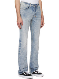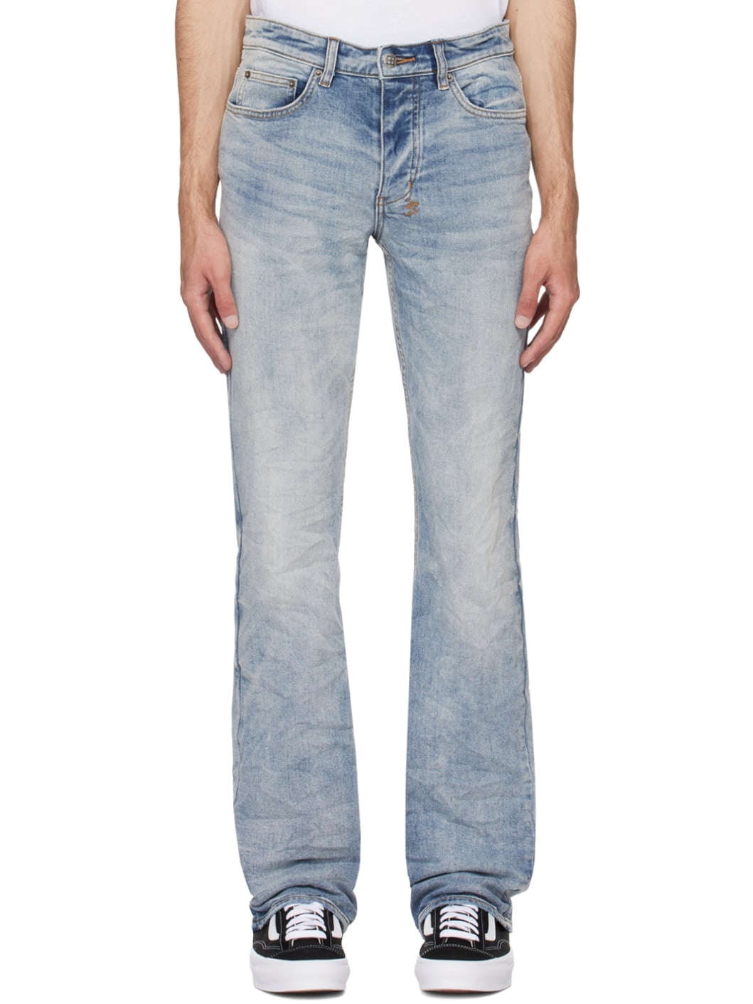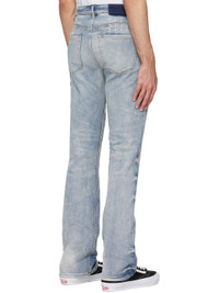 Flared stretch denim jeans. Fading and whiskering throughout. · Belt loops · Five-pocket styling · Button-fly · Logo graphic embroidered at back waist · Logo embroidered at back leg · Detachable logo flag at back pocket · Logo-engraved antiqued silver-tone hardware Supplier color: Denim