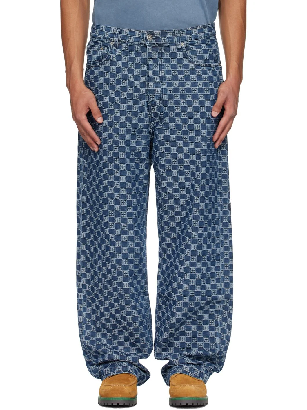 Non-stretch denim jeans. · Jacquard logo pattern throughout · Straight-leg · Belt loops · Five-pocket styling · Button fly · Logos embroidered at back waist · Logo-engraved antiqued silver-tone hardware Supplier color: Denim 100% cotton. Made in Portugal 252088M186063